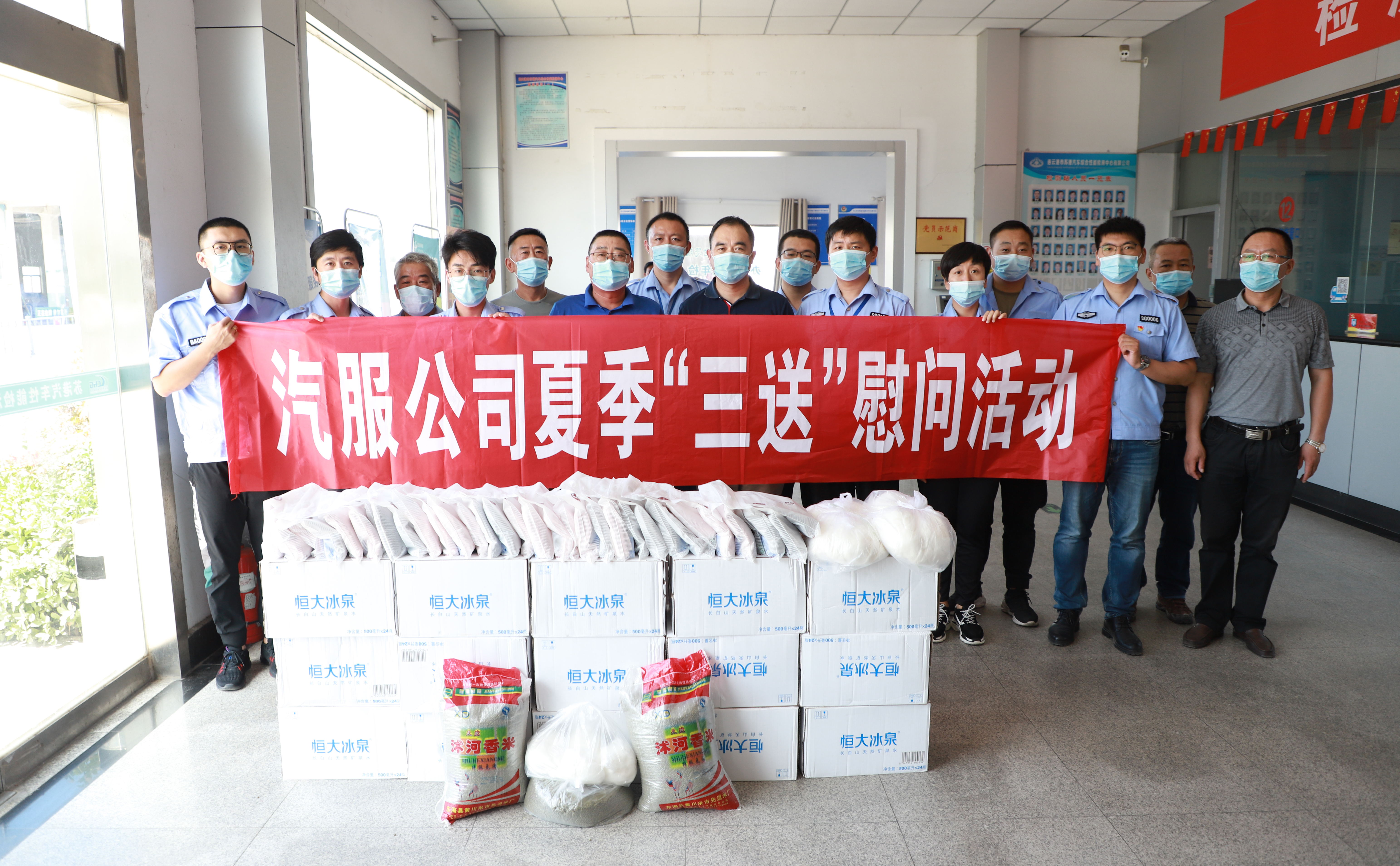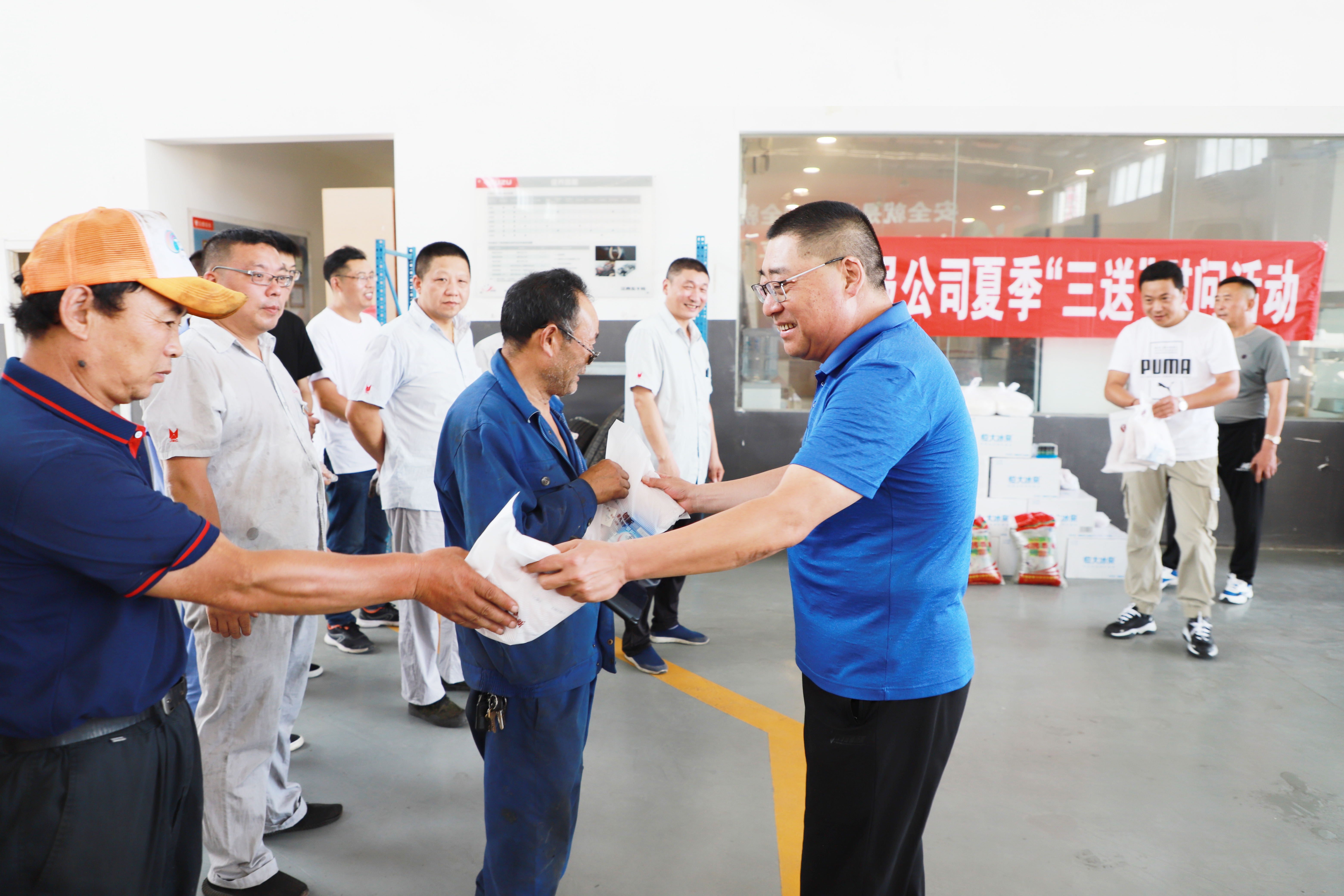 7月23日上午,汽服公司工會(huì)購(gòu)買(mǎi)了風(fēng)油精、綠豆、毛巾等慰問(wèn)品,由公司領(lǐng)導(dǎo)班子成員帶領(lǐng)相關(guān)部門(mén)人員先后到汽車(chē)修理事業(yè)部、汽車(chē)檢測(cè)事業(yè)部等一線車(chē)間開(kāi)展夏季“三送”慰問(wèn)活動(dòng),為奮戰(zhàn)在一線的廣大干部職工送去了真摯的關(guān)懷。黨委書(shū)記、總經(jīng)理趙立喜對(duì)在酷暑天氣下仍堅(jiān)守在一線的從業(yè)人員表示了親切的慰問(wèn),為他們帶去清涼慰問(wèn)物品,叮囑他們要妥善安排好防暑降溫工作,做好疫情防控,持續(xù)抓好安全生產(chǎn)工作。