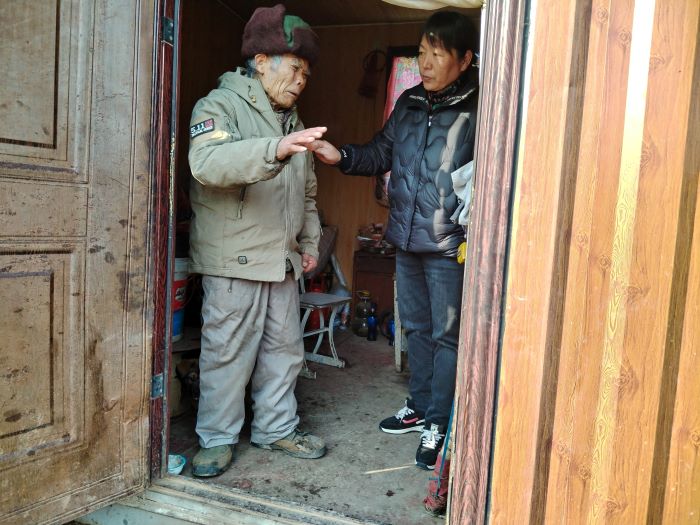 眼前這位瘦骨嶙峋的老人叫李全福,看起來像90多歲,其實今年才74歲,青年時家境不好,29歲那年他只身到連云區(qū)墟溝打工,一直是孤身一人,后來年齡大了,身體不好,只能靠撿垃圾為生。2013年12月,天氣非常寒冷的一天,李全福行走到海棠中路時不幸摔倒暈厥過去,的姐章文彩駕車經(jīng)過時,主動把老人扶到車上并及時將他送到醫(yī)院醫(yī)治,住院期間還多次去醫(yī)院看望并主動為老人墊付醫(yī)療費用。李全福老人出院后,章文彩經(jīng)常買些生活必需品給他送去,并為他提供各種生活上的幫助。三年前,李全福老人因為年齡和身體原因,回到老家居住,雖然來回路程要2個多小時,但章文彩始終惦記著這個孤苦無依的老人,總會在傳統(tǒng)佳節(jié)買些禮品去看望幫助李全福老人,陪老人聊家常,讓老人不再孤獨。