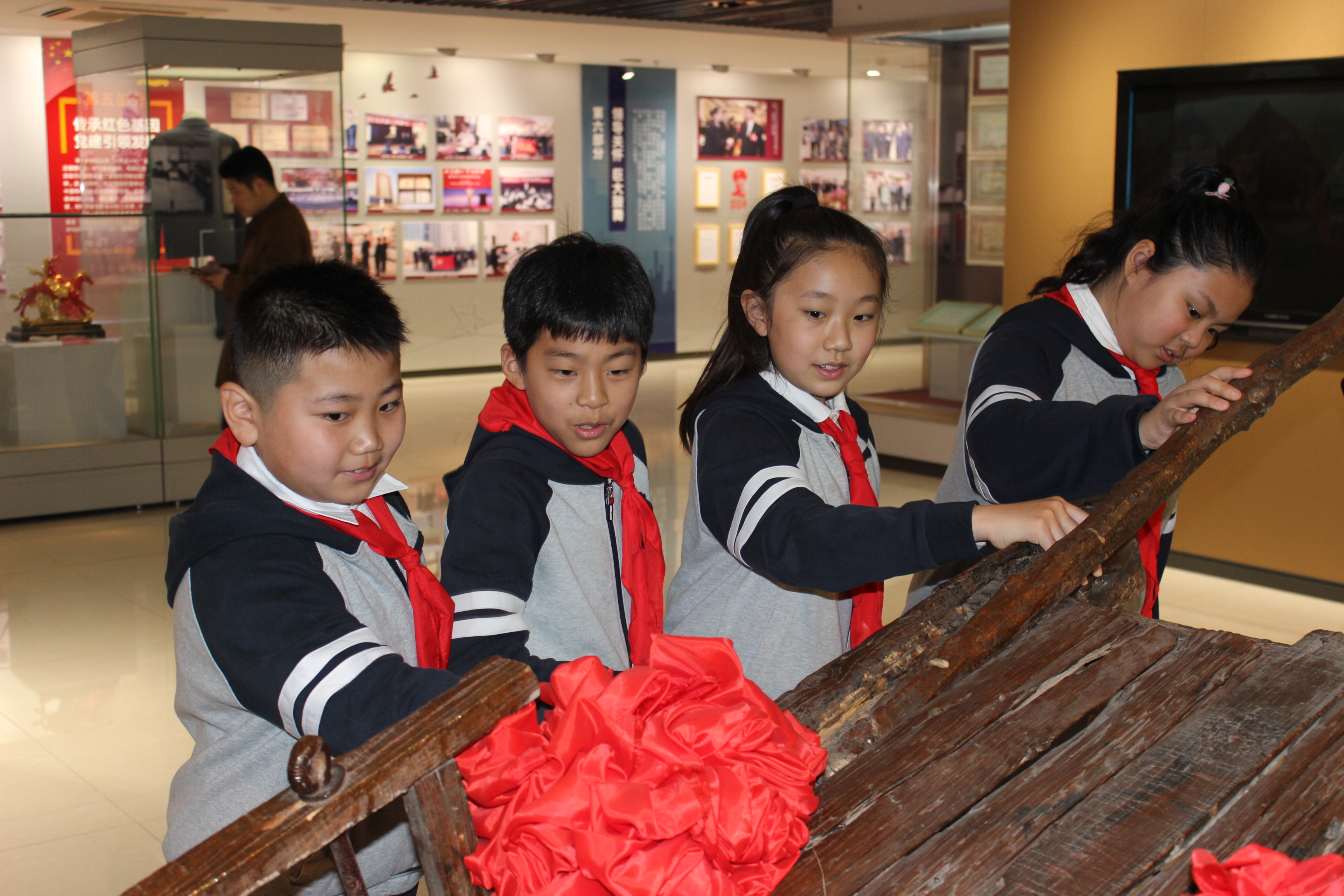 “學習雷鋒好榜樣,忠于革命忠于黨……”——同學們唱著《學習雷鋒好榜樣》,排著整齊的隊伍走進陳列館,在“雷鋒”同志的畫像前敬少先隊隊禮以表崇敬。隨后,同學們跟隨著李園園的步伐,認真觀看櫥窗內(nèi)的圖片、資料和展品,用心去聆聽“雷鋒車”組姐妹們無私奉獻、扶危救困的先進事跡。在李園園聲情并茂的講解下,一件件舊物、一張張照片變得鮮活起來。同學們觸摸著被歲月拋光的平板“雷鋒車”,紛紛表示,“雷鋒車”組六代車手59年堅持學雷鋒的事跡讓人震撼,雷鋒車“寧愿自己千般苦,不讓旅客一時難”的精神讓人感動,并表示要向“雷鋒車”組的阿姨們學習,爭當幫助他人,樂于奉獻的時代好少年。