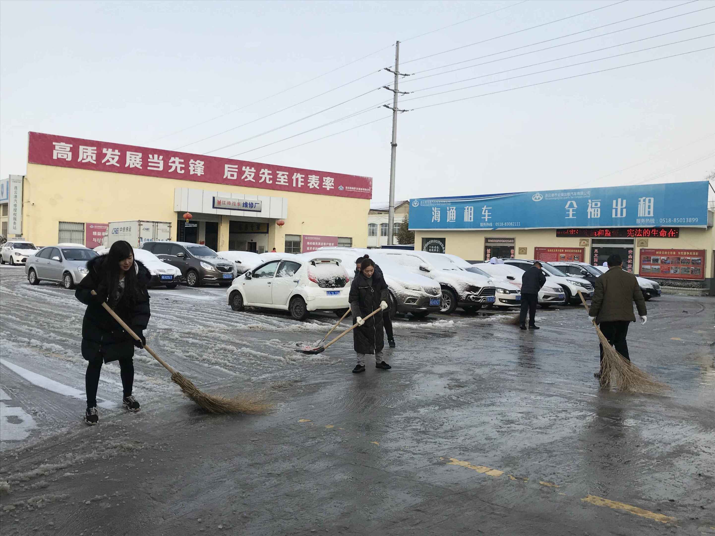 一場大雪讓港城銀裝素裹,也給市民出行帶來不便,2019年1月31日早上,海通汽服公司高度重視,迅速行動, 立即動員機關(guān)及權(quán)屬企業(yè)的干部職工開展掃雪鏟冰活動。