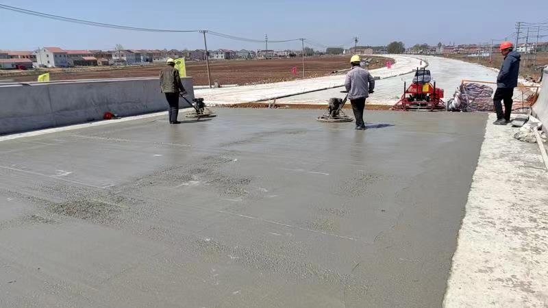 此次橋面鋪裝以沭北運河大橋第5聯做為橋面鋪裝首件,該大橋全長499米,本次澆筑首件長度為120米,寬度為12.5米,厚度為10厘米。為保證橋面工程質量,項目部制定橋面系施工方案,對作業(yè)人員進行專項施工技術及安全交底。施工過程中,項目部強化過程管控,嚴格把控原材料、橋面清理、鋼筋網鋪設、橋面鋼筋保護層、橋面平整度、混凝土質量等工序。本次橋面鋪裝采用泵車輸送混凝土澆筑,三滾軸混凝土攤鋪機進行混凝土攤鋪整平,座架式抹光機收面,分段施工完成后進行覆蓋養(yǎng)生,確保質量符合設計及規(guī)范要求。本次首聯橋面鋪裝的順利澆筑,為項目整體橋面系施工提供了有效指導,也為后續(xù)橋梁施工打下了堅實基礎。