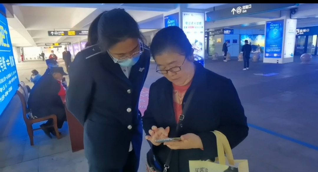 5月6日,一位年逾7旬的老人獨(dú)自一人背著包拿著手機(jī)在高鐵站出站口“雷鋒車”驛站徘徊,這一幕正好被正在驛站值守的工作人員羋丹發(fā)現(xiàn)。上前經(jīng)詢問得知,大姨準(zhǔn)備去蘇州,窗口購票排隊(duì)人太多,她想用手機(jī)網(wǎng)上購票,但又不熟悉操作流程。