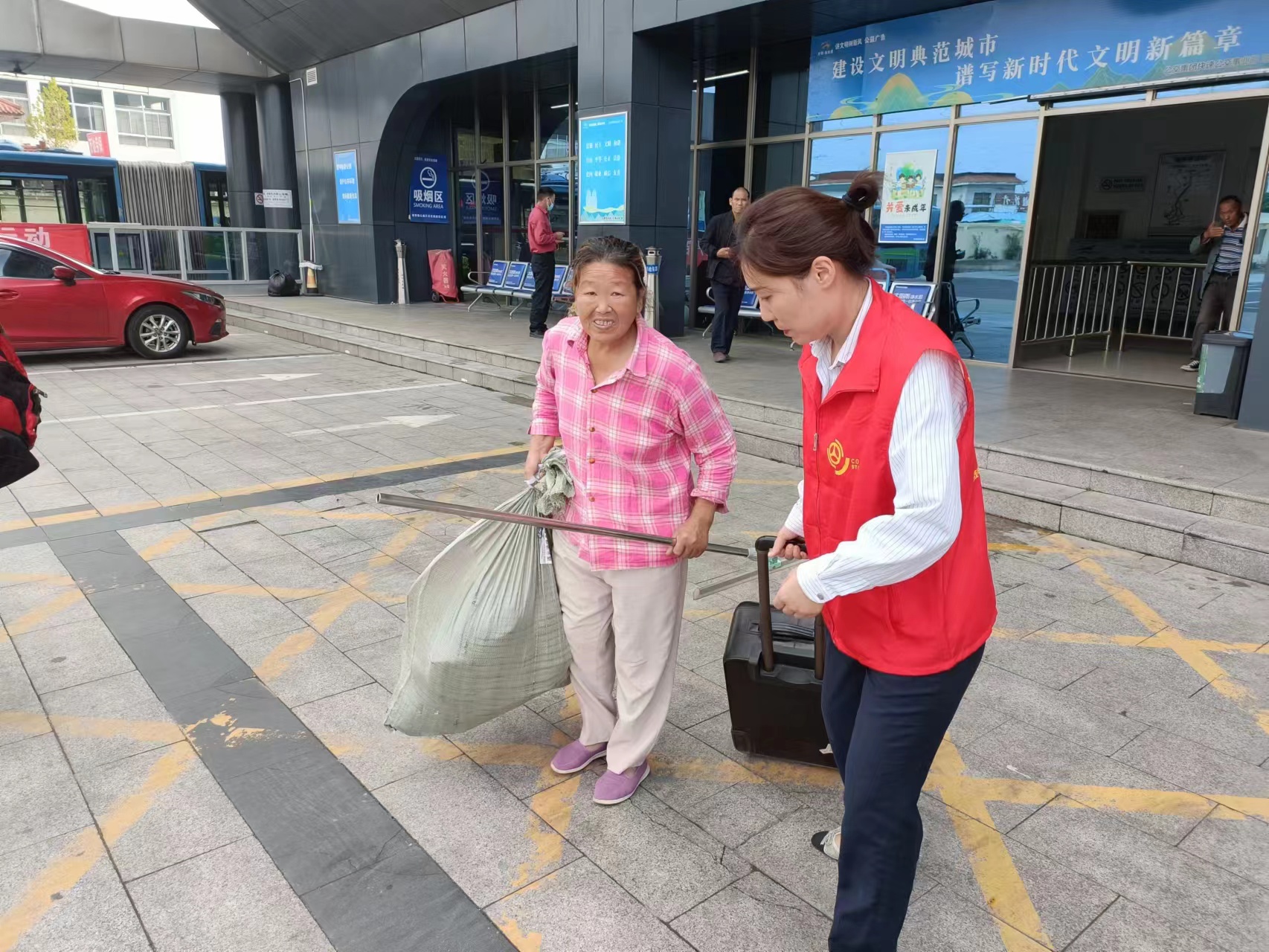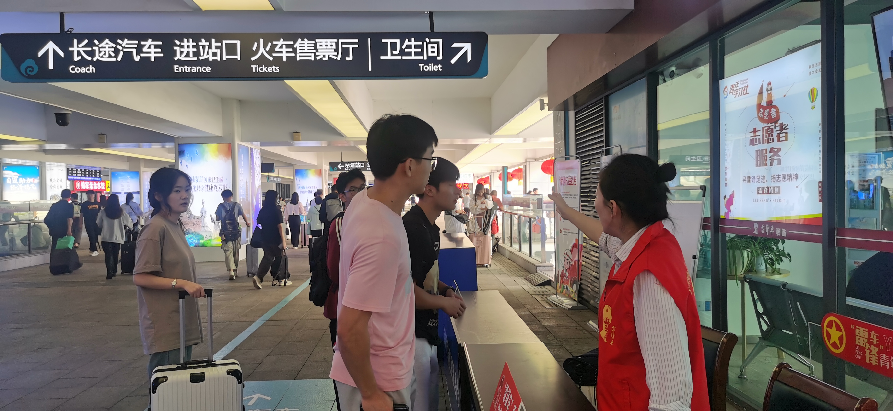 隨著“雙節(jié)”假期客流增多,高鐵站的客流量也迎來高峰。為確保旅客能夠順利出行,連汽公司在高鐵站的“雷鋒車”驛站、公交站臺等客流量較大點位增派志愿服務(wù)人員,對旅客進行換乘引導,維持現(xiàn)場客流秩序,解答乘客問詢,幫助旅客解決困難。此外,為了方便旅客轉(zhuǎn)乘,連汽公司節(jié)日期間還在高鐵站至老財校停車場之間開通了免費接送旅客的“雷鋒車”,602、603專線也安排人員到高鐵站現(xiàn)場進行引導,幫助旅客及時換乘,緩解旅客滯留壓力。