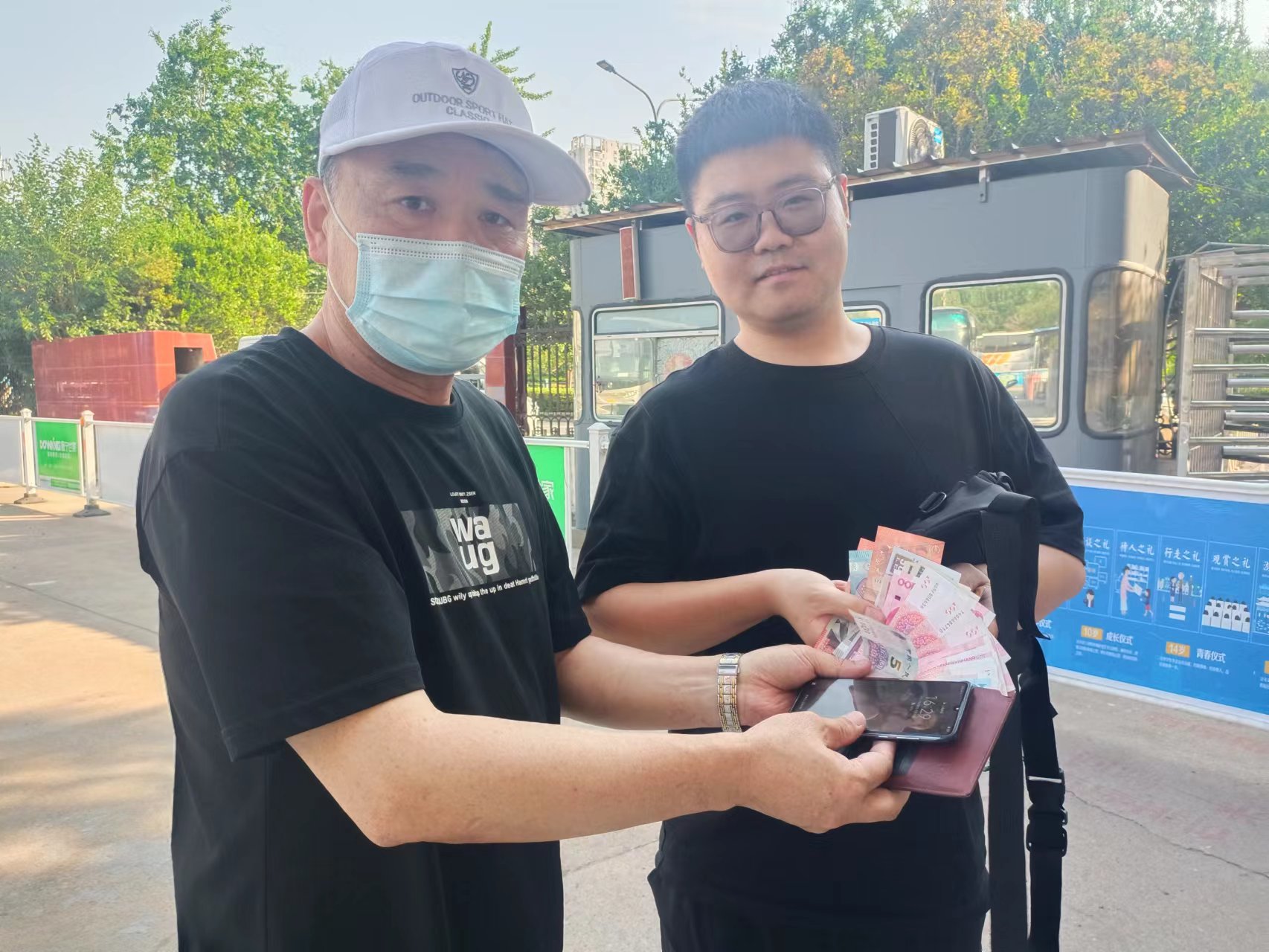 6月12日上午,連汽蘇欣快客站機(jī)場專線駕駛員楊林波完成駕駛?cè)蝿?wù)后進(jìn)行清潔車輛時(shí),在車廂內(nèi)發(fā)現(xiàn)了一個(gè)背包,在車輛監(jiān)控范圍內(nèi)打開后,發(fā)現(xiàn)包內(nèi)有手機(jī)、充電寶、移動(dòng)硬盤和現(xiàn)金1000余元、外幣若干等物品,考慮到失主肯定很著急,便立即將背包送到蘇欣快客站調(diào)度室交給調(diào)度員保管,便繼續(xù)執(zhí)行運(yùn)營任務(wù)。