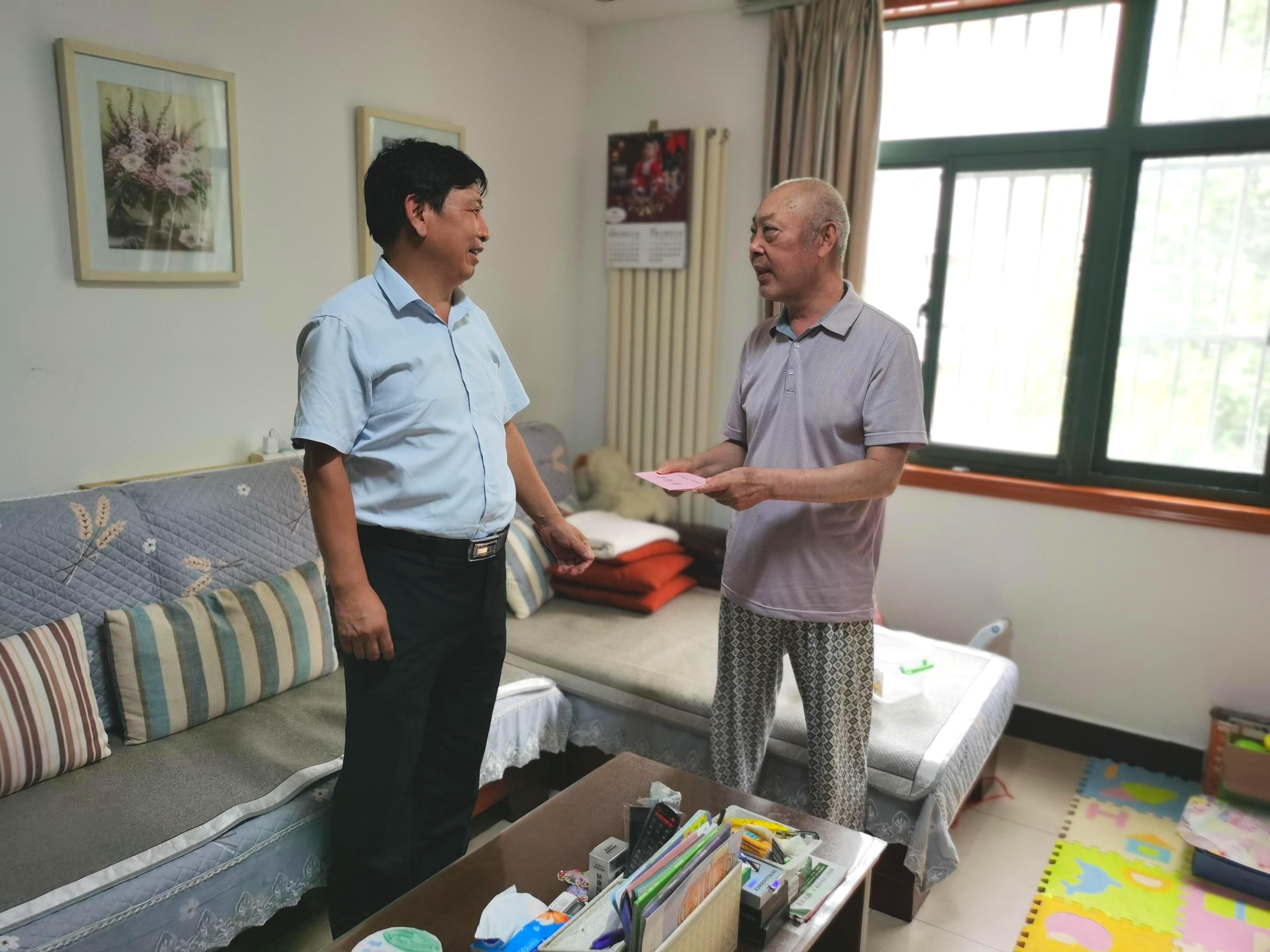 在陸啟江、王桂亮家中,仲濟(jì)強(qiáng)詳細(xì)了解他們的生活情況和身體狀況,并將慰問金送到了他們手中。大家坐在一起,親切交談,回憶了當(dāng)年工作時(shí)的情景。仲濟(jì)強(qiáng)叮囑他們,在炎炎夏日一定要做好防暑降溫工作,保持良好的心態(tài),合理鍛煉,保重身體。