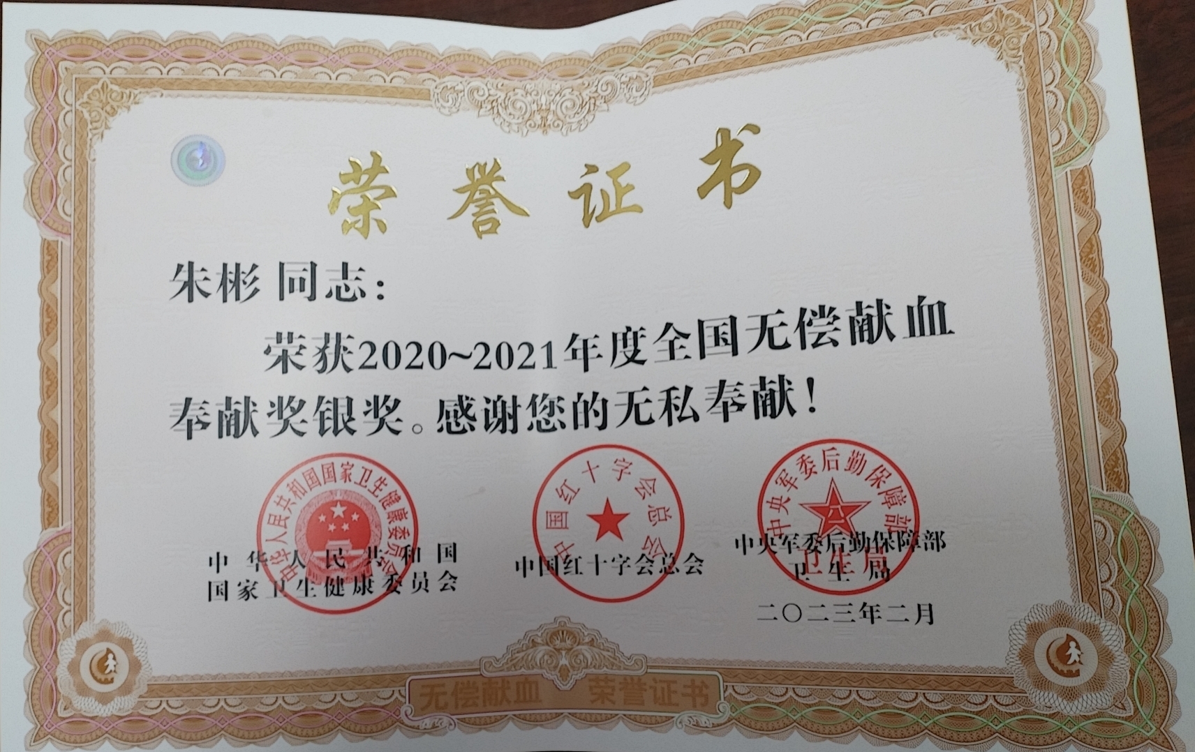近日,國家衛(wèi)健委、中國紅十字會總會、中央軍委后勤保障部衛(wèi)生局聯(lián)合下發(fā)《關于表彰2020-2021年度全國無償獻血表彰獎勵獲獎者的決定》文件,對2020-2021年度在無償獻血工作中作出突出成績的?。ㄊ校?、集體和個人進行表彰。連汽修理公司副經(jīng)理朱彬因突出貢獻,榮獲由國家衛(wèi)生健康委頒發(fā)的“全國無償獻血奉獻銀獎”。