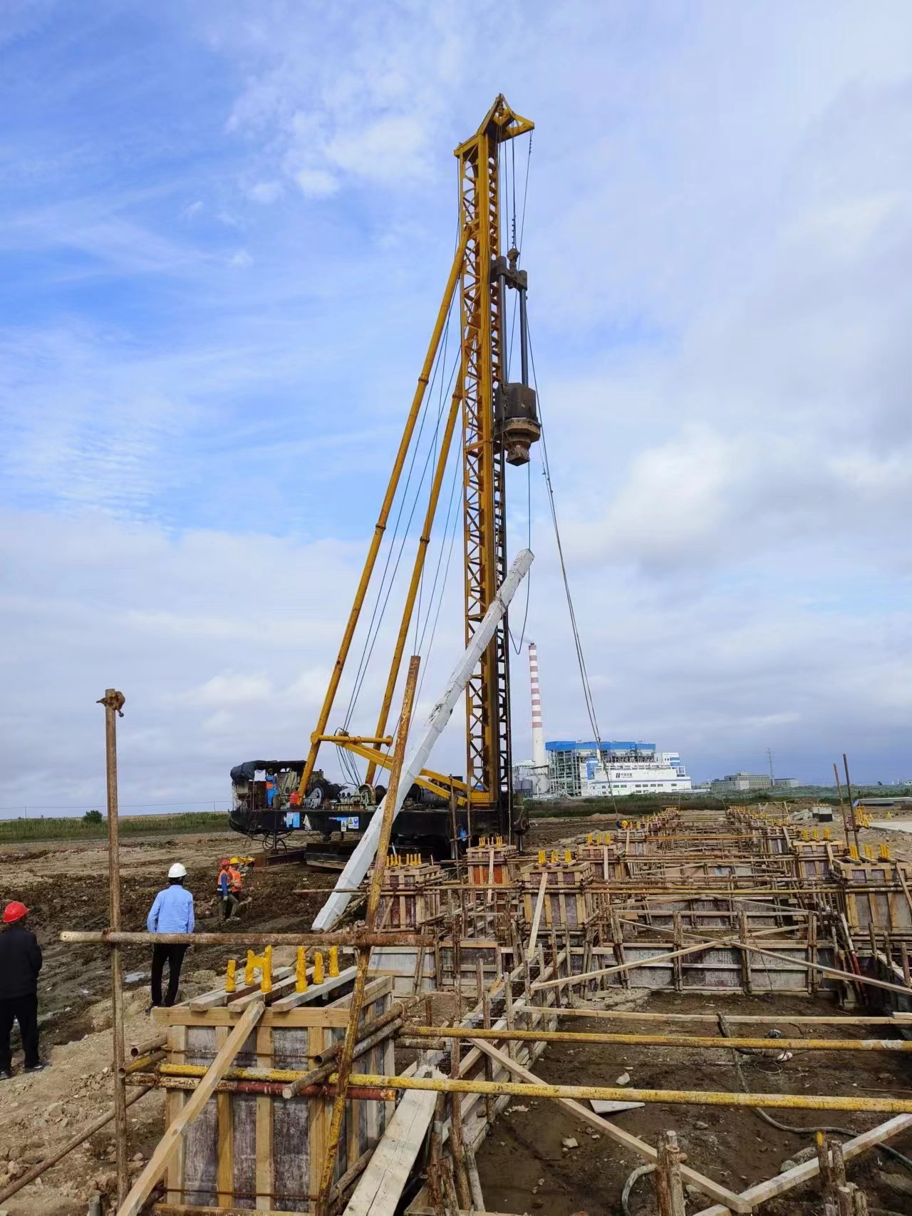 本項(xiàng)目地處燕尾港臨港產(chǎn)業(yè)園,鄰近海邊施工,現(xiàn)場(chǎng)地質(zhì)條件較差,樁基數(shù)量多,間距小,施工機(jī)具操作困難。項(xiàng)目部上下一心通過(guò)現(xiàn)場(chǎng)土體換填、跳打施工等多種方法主動(dòng)創(chuàng)造有利條件,避免作業(yè)沖突,在符合安全、質(zhì)量的前提下,搶干快干,順利完成了樁基施工目標(biāo)。