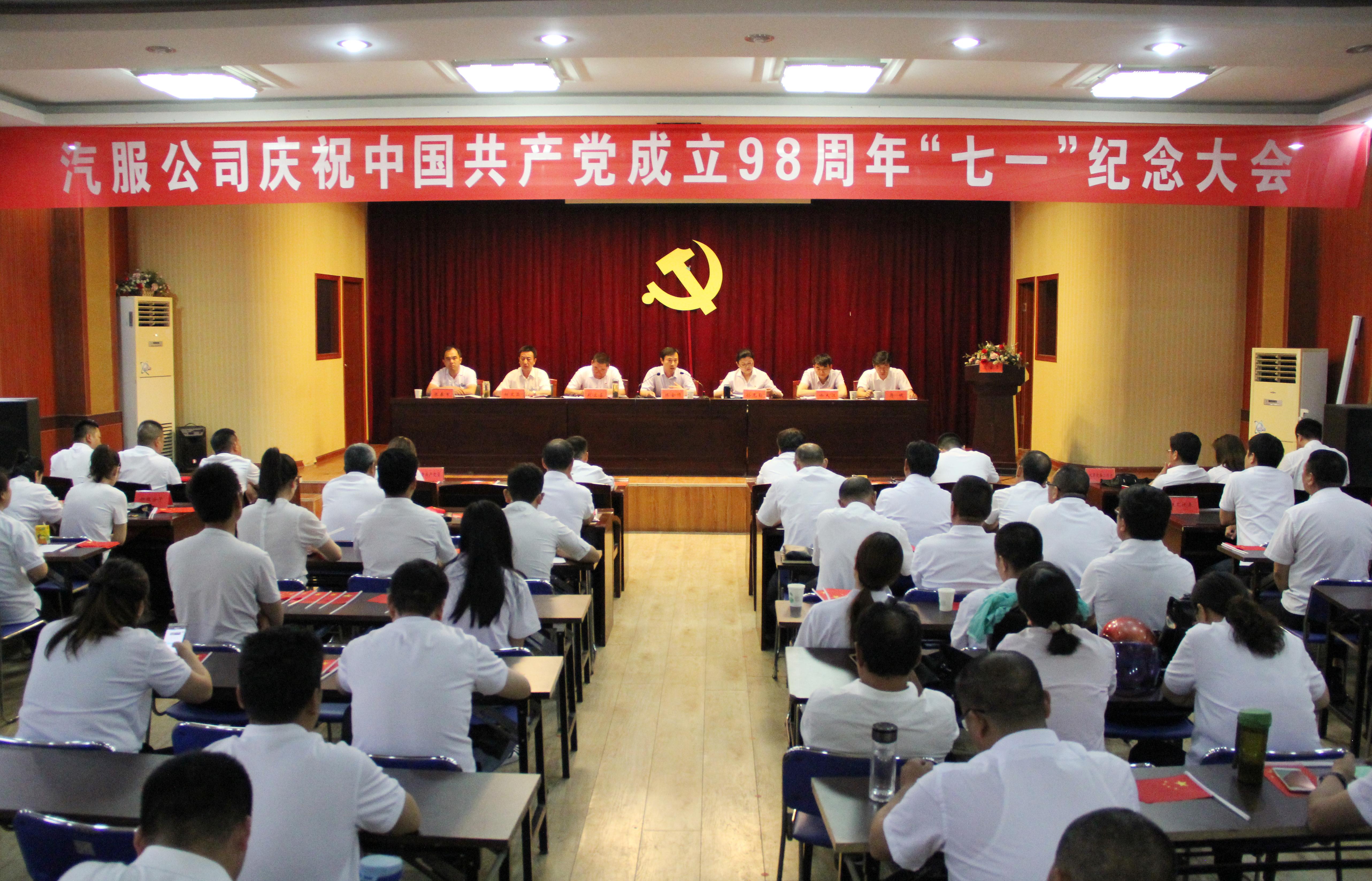 為紀(jì)念中國共產(chǎn)黨建黨98周年,進(jìn)一步激勵(lì)廣大基層黨組織和共產(chǎn)黨員發(fā)揮戰(zhàn)斗堡壘和先鋒模范作用,6月28日下午,汽服公司隆重召開慶祝建黨98周年暨“七一”表彰大會(huì),公司領(lǐng)導(dǎo)班子成員、權(quán)屬單位中層干部、黨員干部、入黨積極分子、優(yōu)秀大學(xué)生代表及部分職工代表共計(jì)120余人參會(huì)。集團(tuán)黨委副書記、汽服公司董事長陳金師及集團(tuán)派駐第二紀(jì)檢組長徐大江應(yīng)邀參加了會(huì)議。會(huì)議由公司副總經(jīng)理趙立喜同志主持。