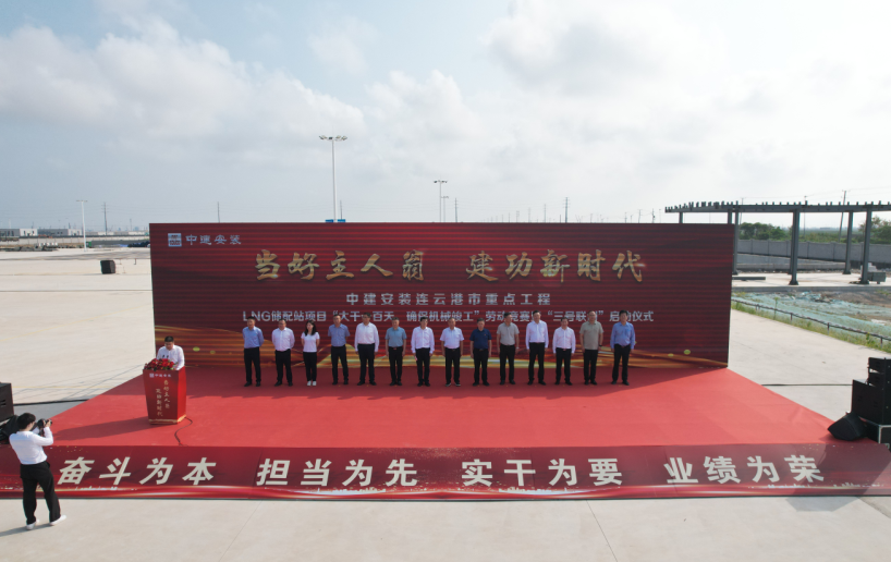 8月15日,連云港市交控物流集團(tuán)LNG儲(chǔ)配站項(xiàng)目成功舉辦“大干一百天”勞動(dòng)競(jìng)賽啟動(dòng)儀式及LNG儲(chǔ)罐外罐安裝完成儀式,全面掀起百日大干熱潮。江蘇省建設(shè)工會(huì)主任齊朝輝、副主任佘玉龍,連云港市委機(jī)關(guān)工委調(diào)研員方志祥,市交通控股集團(tuán)總會(huì)計(jì)師、市交控物流集團(tuán)董事長(zhǎng)張廣兵,市交控物流集團(tuán)副總經(jīng)理、工會(huì)主席劉超,中建安裝集團(tuán)副總經(jīng)理劉文建,中建安裝石化工程公司黨委書記、執(zhí)行董事葉茂揚(yáng)出席活動(dòng)。