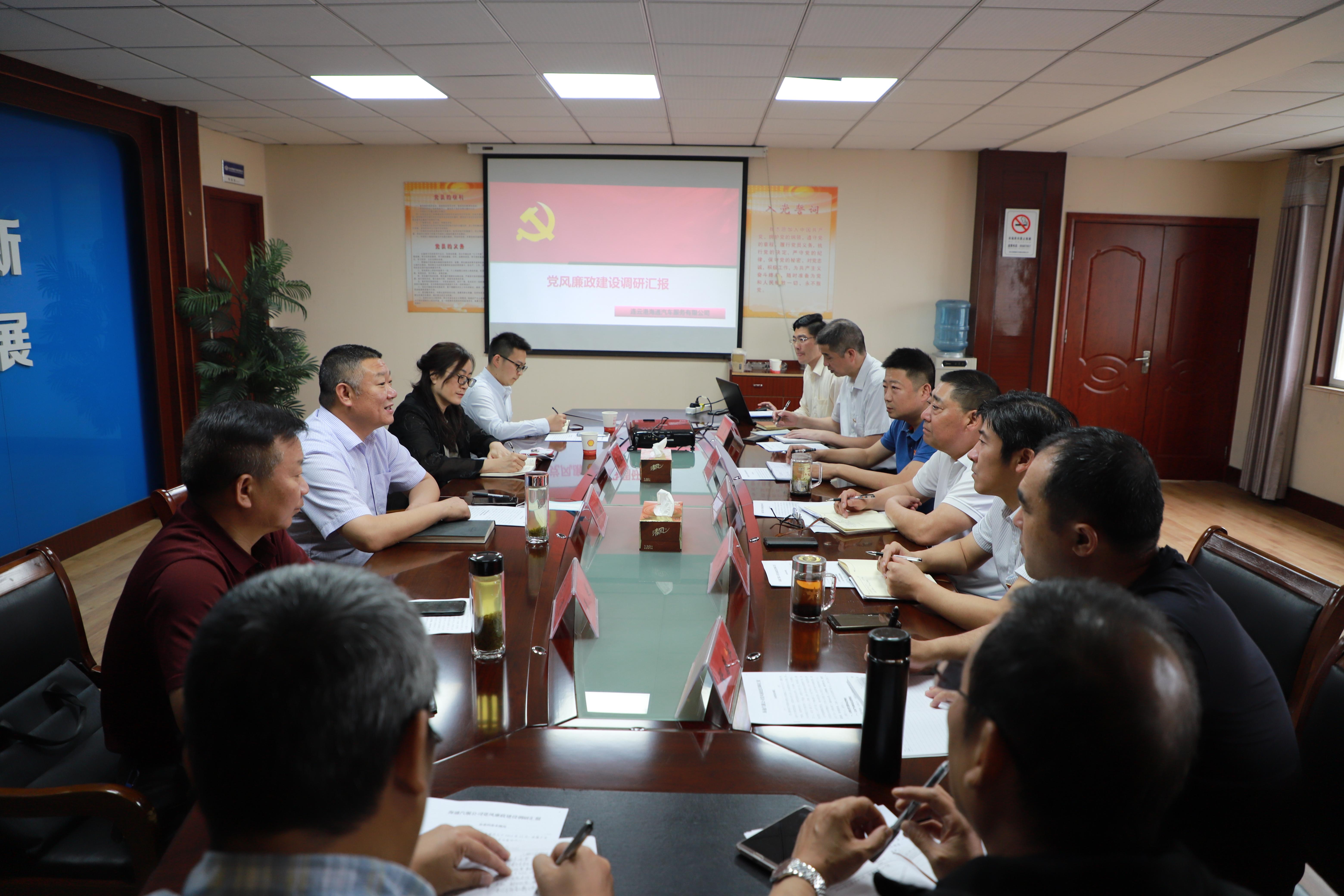 6月18日上午,市紀委監(jiān)委派駐第二十一紀檢監(jiān)察組組長張海帶領調研組一行4人,到汽服公司調研黨風廉政建設工作,公司全體領導班子成員及相關部門負責人參加調研活動。