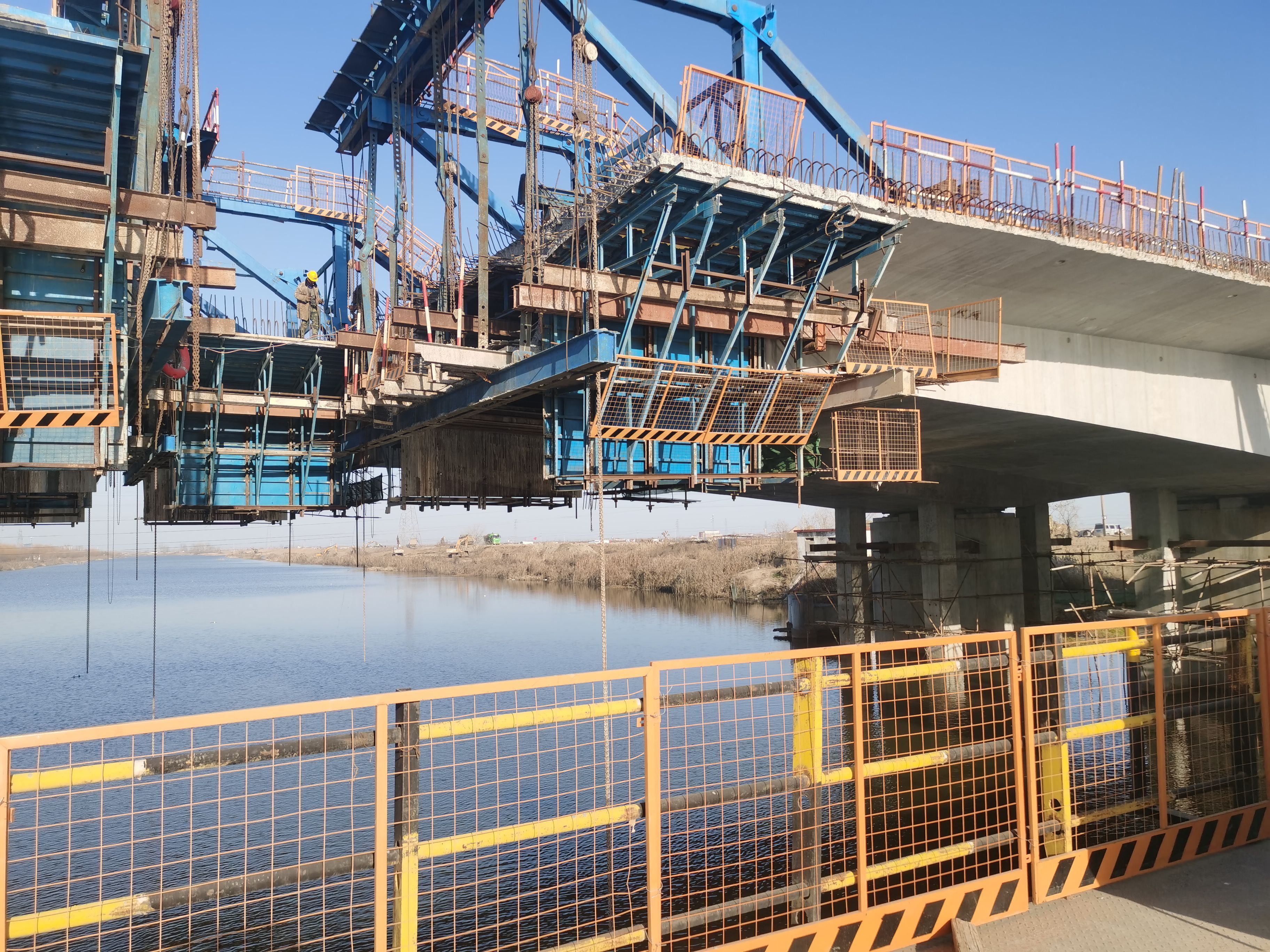 日前,在江蘇海建公司402省道贛榆南環(huán)段路基橋涵工程施工現(xiàn)場,經(jīng)過4小時的持續(xù)作戰(zhàn),上部結(jié)構(gòu)變截面連續(xù)箱梁7#塊變截面箱梁梁成功澆筑,這也標(biāo)志著橋梁施工進(jìn)入新階段,為主橋上部結(jié)構(gòu)下一步合攏施工奠定了基礎(chǔ)。