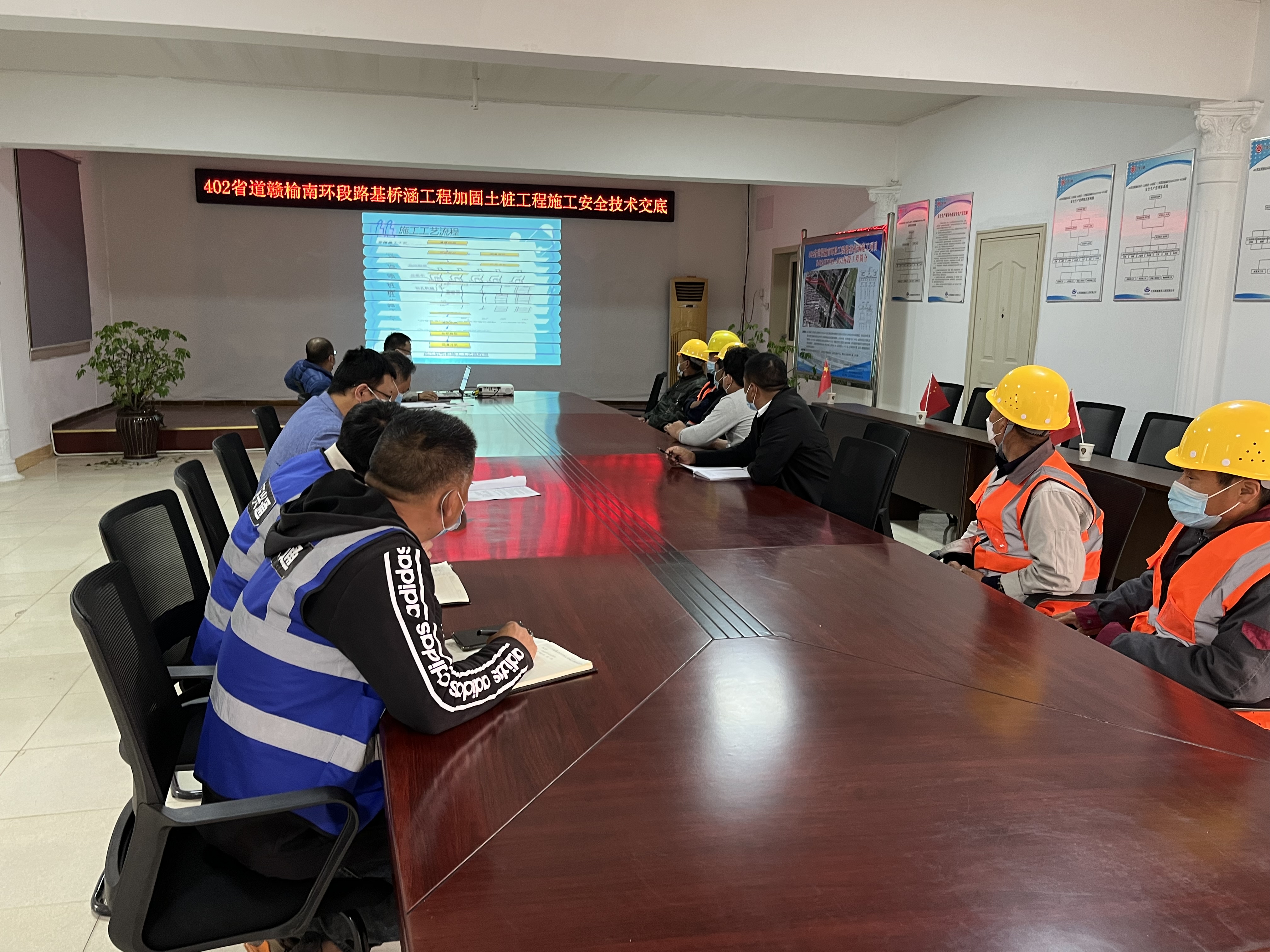項目部在高壓旋噴樁樁施工前對現(xiàn)場深入仔細地進行了勘察,根據現(xiàn)場勘察情況提前編制高壓旋噴樁施工技術方案,并報監(jiān)理工程師審核,經建設單位審批后實施。同時,項目部邀請總監(jiān)辦相關人員等對高壓旋噴樁施工進場人員施行安全技術三級交底,并進行了質量安全教育培訓,同時對進場人員做好登記,筑牢疫情防控,為高壓旋噴樁下一步施工工作打下基礎。